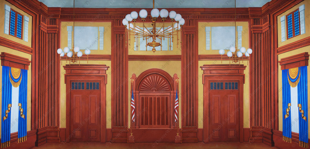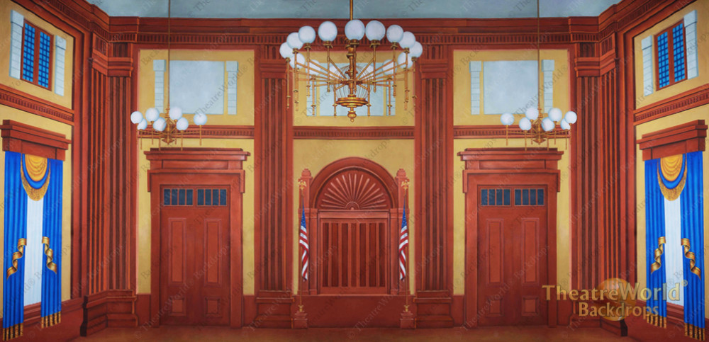 This backdrop works fantastically for the interior of virtually any federal building, upscale office building, college classroom, or courthouse interior..