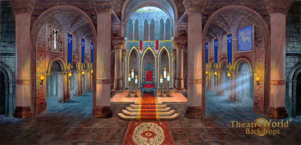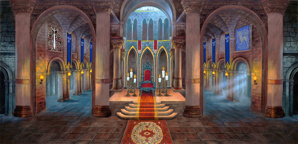 Watch your tongue or heads may roll with this dark and dramatic medieval castle interior. Perfect for evil queens, dragons, fairy tales, and mad kings alike this backdrop features dramatic lighting, a Gothic royal throne, and stone arches.