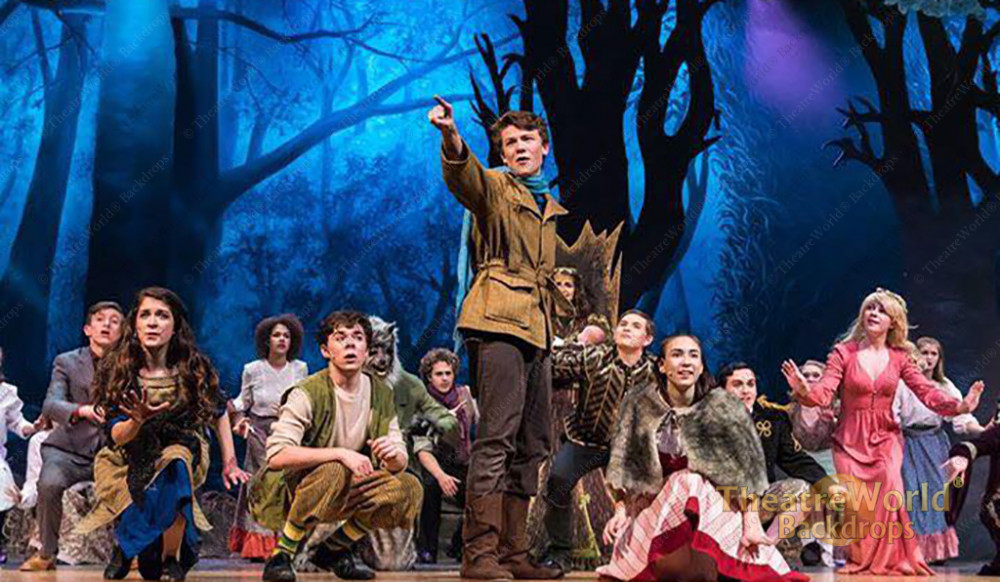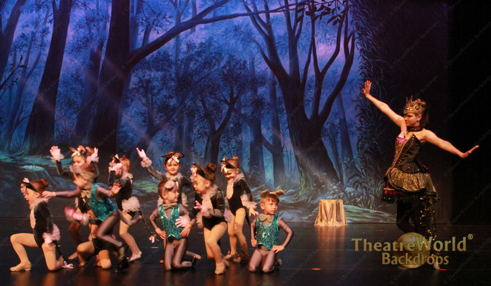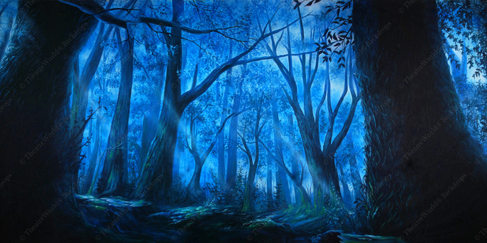 A foreboding wooded forest illuminated with an eerie glow makes this backdrop perfect for any fairy tale or dramatic wooded scene.