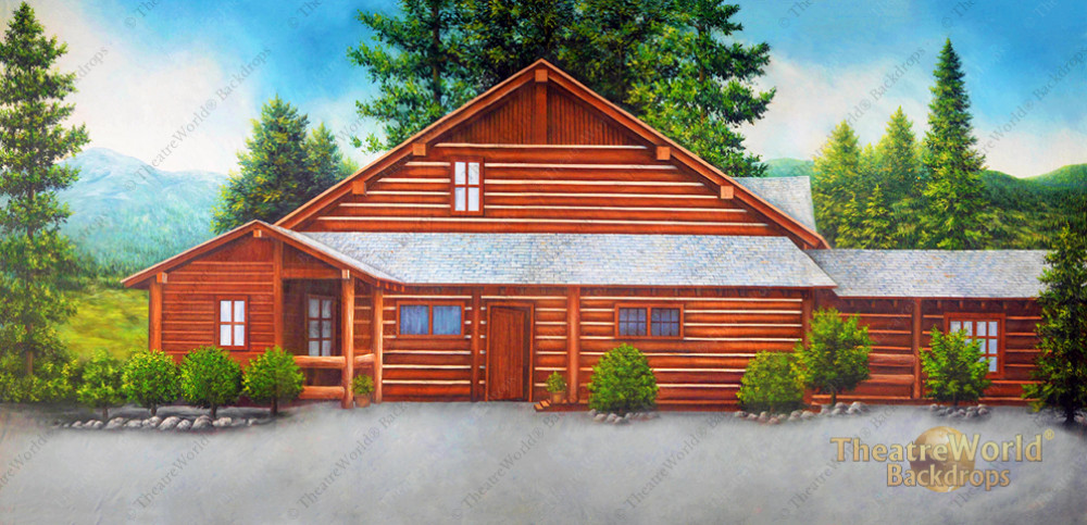 A beautiful backdrop featuring a American western log cabin inspired by the Ponderosa Ranch as seen on the television series "Bonanza".