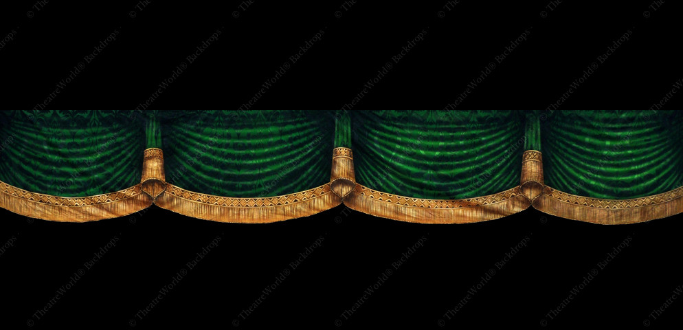 This vibrant green header is perfect for any production wishing to frame their production in a vintage and detailed teaser curtain. Complete the look with our matching leg set. Also available in alternate colors.