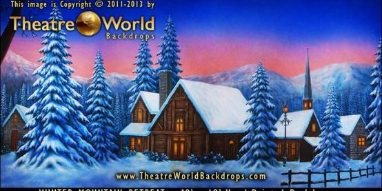 During the next few months, we will be adding approximately 40 additional stage backdrops to support the 2013 holiday season. 20+ of the hand-painted backdrops will be new designs and will give you many new, beautiful, and visual scenic ways to depict Winter, Christmas, Holiday scenes, and The Nutcracker for your fall presentations, shows, or events requiring artistic and dramatic winter scenes. TheatreWorld is also offering very special pricing on holiday scenic backdrop purchases, for those of you who produce the same holiday show each year or wishing to own a backdrop as opposed to renting (limited production slots available).
